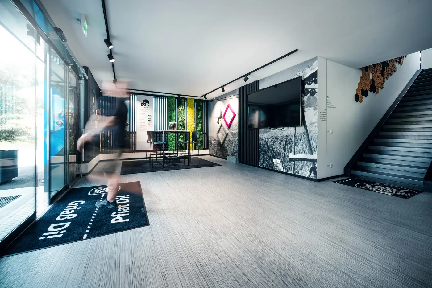 Im Juni 2020 wurde mit der Bauplanung begonnen und nach nur 10 Monaten Bauzeit konnte der neue Betrieb im März 2021 bezogen werden. Auf 2.600 m² verteilen sich nun Büros, Lagerräumlichkeiten sowie ein moderner Schauraum, der das Leistungsspektrum präsentiert. Auch gibt es nun endlich eine große Beschriftungshalle inkl. Hebebühne für PKW, LKW und Busse sowie genügend Parkplätze für Kund:innen und Mitarbeiter:innen.