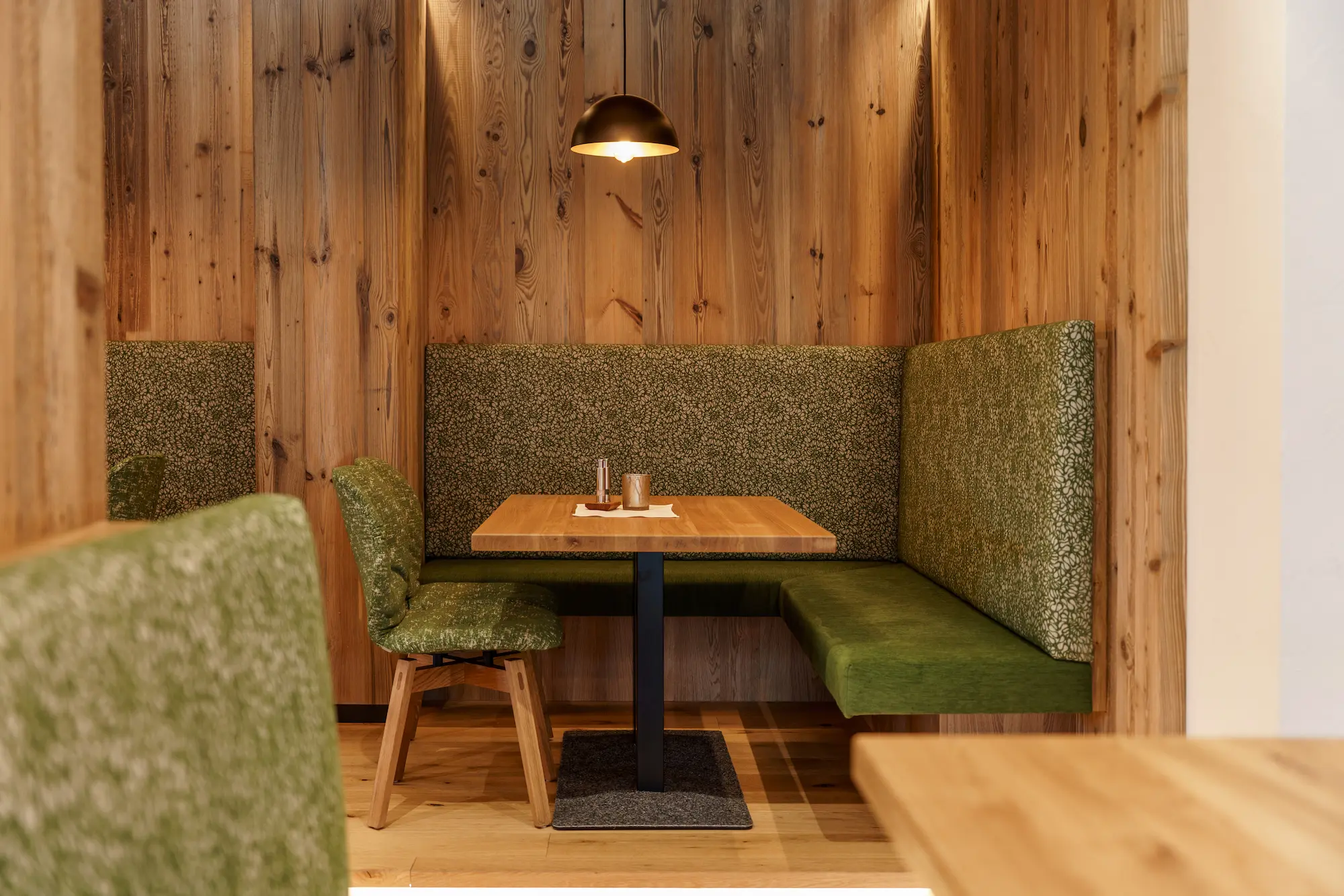 Die architektonische Planung setzte auf klare Strukturen, großzügige Raumkonzepte und die Verwendung hochwertiger, regionaler Materialien, um Tradition und Moderne zu vereinen. Neben den Gästezimmern wurden zentrale Hotelbereiche wie die Rezeption, der Speisesaal mit Buffet- und Front-Cooking-Bereich, sowie Wellness-, Fitness- und Familienangebote umfassend erneuert.
